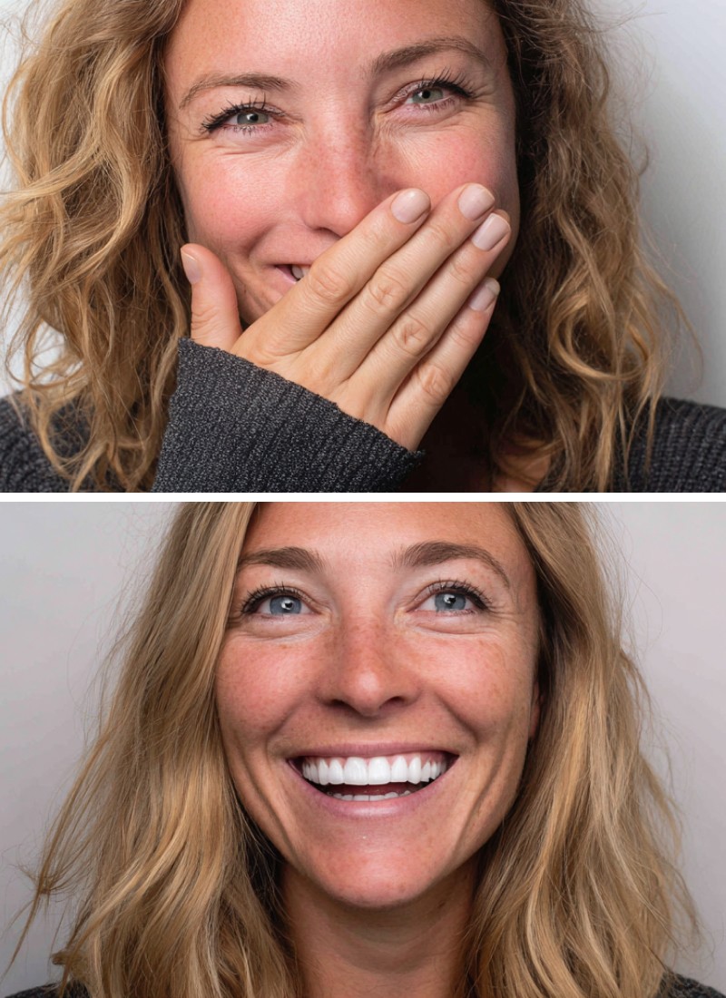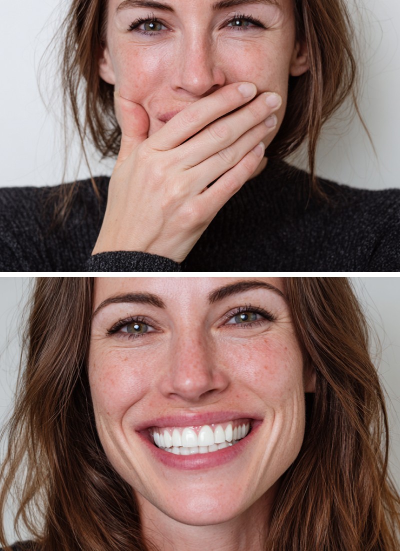 Sie lachen, aber halten sich zurück. Die Hand vor dem Mund, der bewusst geschlossene Kiefer, das kurze Zögern bevor das Lächeln kommt. Wer das kennt, weiß: Es kostet Energie. Und das muss nicht so bleiben.